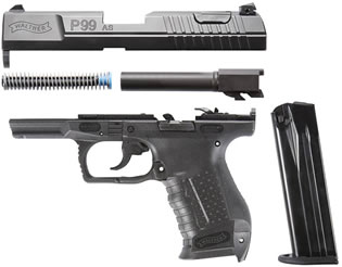 The Walther P99 is a semi-automatic pistol developed by the German company Carl Walther GmbH Sportwaffen of Ulm for law enforcement, security forces and the civilian shooting market as a replacement for the Walther P5 and the P88. The P99 and its variants are also made under licence by Fabryka Broni Radom. Compact versions of the P99 are called P99C. The Umarex CP99 is an Air Pistol under licence by Walther.