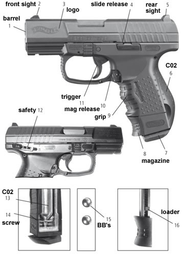 This compacted version of the Walther P99 is modeled after the firearm used by special forces as their back-up pistol. This popular CO2 powered BB air pistol captures realism with its BLOWBACK, and features a single action trigger function and decocker safety is operational, with red dot indicator at the nack of the slide. Slide stop behaves like real gun, stays open when magazine is empty. The 12g CO2 cylinder loads in the back of the grip and the BB magazine releases with the push of a realistic magazine release lever. The magazine holds 18 rounds. The recoil action made live by the power of CO2 kicks the slide back giving you that oh-so-realistic feel. The customizability of this air pistol is increased a lot by the picatinny rail, making it easy to add your favorite accessory. The Umarex Walther CP99 Compact, is perfect for anyone looking for a unique pistol with hard-hitting performance and reliable internals. Be sure you buy extra magazines for none-stop action.