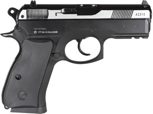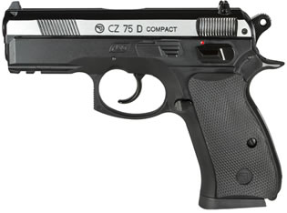 CZ 75 D Compact is a self-priming pistol manufactured by the Czech arms factory Uherský Brod. It is based on the design of the CZ 75 pistol, from which it differs in particular from the light alloy frame and in that it has a locking point for the drain cock and a warning. It also has grooves for attaching a laser sight or lamp. The shape of the glove and the grooving of the handle allows gloves to fire. Meets NATO standards. It is designed for long-term wearing and aiming shooting up to 50 m.