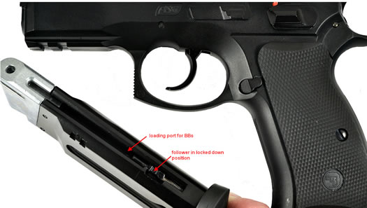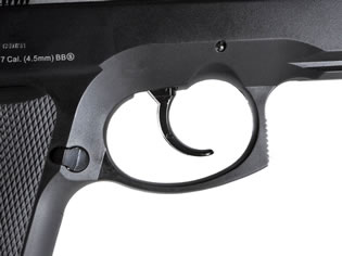 Overall, I liked this pistol. It has very clean lines with few markings which would reveal it to be a replica pistol. The rubber grips and rubber magazine butt plate are unique enhancements to a BB pistol and feel great. The gun has 3 dot sites, with the rear one being adjustable for windage with the enclosed multi-tool. Although it does not have blowback, nor a metal slide, the slide is functional and can be pulled back to cock the hammer - allowing the gun to be fired in single action as well as double. The slide catch is molded into the frame and non-functioning so the slide cannot stay back in the retracted position. The gun shot consistent 2-3 inch groups at about 30 feet. The follower on the BB magazine did leave a lot to be desired. The spring tab on the follower is much too small to get a grip on and took repeated attempts to get it into the retracted position to load the BB's. I resorted to using the allen key on the multi-tool to slide the tab back. I also found that a flat-head screwdriver worked much better at turning the CO2 piercing screw located in the butt plate than the flat-head attached to the enclosed multi-tool. Both work, but are still a hassle. Although the gun is not on par with the 75 P-07 Duty model, it's still a solid gun and a keeper.