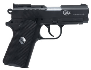 The Colt Defender shoots .177 BB's and delivers a velocity of 440 feet per second. Powered by a 12 gram CO2 capsule, shooters can get up to 25 feet that can get anywhere from 90 to 150 shots with controlled use. The fixed blade front sight helps promote the accuracy delivered by this semi automatic weapon. Under the barrel shooters can also mount a flashlight or laser sight to the Weaver accessory rail and keep their target in sight. The Colt Defender non-blowback air pistol is a great plinker with good power and accuracy for practice drills. You'll Love the Look and Feel of this Colt 1911 Defender Air Pistol.