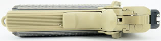 What makes the M45A1 stand out is its brown Decobond coated Stainless Steel Receiver and Slide, Novak 3 Dot Night Sights and Flat, Serrated Mainspring Housing with Lanyard Loop. The pistol also features an Enhanced Hammer, Colt Tactical Ambidextrous Safety Lock, and a 5†National Match Barrel. The trigger-pull weight is specified at between 4.5 and 5.0 pounds-force (20 and 22 newtons).