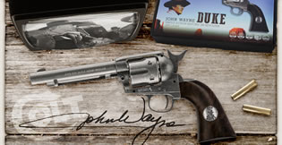 The Colt Single Action Army (SAA) .45 revolver air pistol is a true American icon and has graced the collections of enthusiasts for 140 years. A favorite gun of the late John Wayne, the Peacemaker sat on his hip in over 100 of his Western films. An Oscar-winning Hollywood legend, John Wayne was also known as the 'Duke'