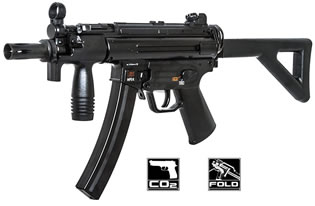 The Heckler & Koch MP5K-PDW Air Gun features high velocity, 400 fps semi-automatic action from a high capacity 40-shot mag. The repeater has realistic recoil action when shooting BBs from the ultra-realistic barrel. A foldable stock, forearm grip, and drop-out magazine make this one of the most exciting and fun to shoot BB air guns ever created. The KPDW gun weighs in at a lightweight 2.4 lbs. The Umarex HK MP5Ks outstanding accuracy and repeatability makes this a popular choice. This is one all enthusiasts should have in thier collection.