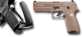 Recently selected by the US Army to replace the Beretta M9, The SIG Sauer P320 pistol is destined to see action overseas for years to come as the standard Army issue sidearm. The replica SIG Sauer P320 air pistol has the exact same trigger pull as the real gun for a real feel, ideal for owners or fans of the real pistol, but less costly to shoot.