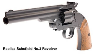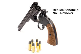Enjoy a beautiful piece of history with the replica Schofield No.3 Revolver from Bear River. An authentic BB version of the classic Smith & Wesson No.3 Schofield revolver from 1875, the first thing you'll notice is the precision craftsmanship and attention to detail. Each revolver feels heavy and balanced in your hand, available in an authentic gunmetal finish with an included 1 year warranty.